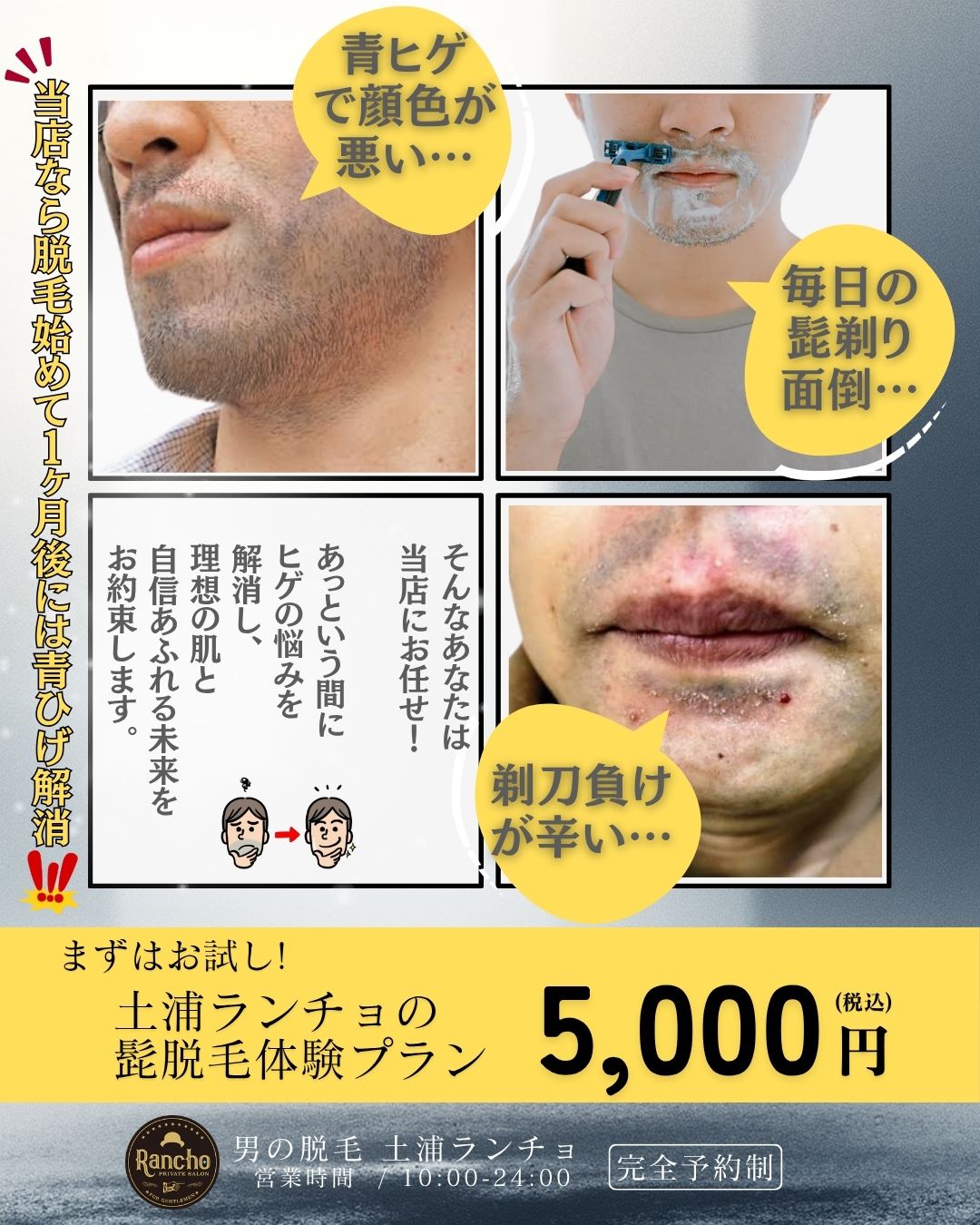 土浦ランチョの青ヒゲ掃討作戦とは。 まず、青ヒゲとは濃いヒゲを剃った時に皮膚に透…